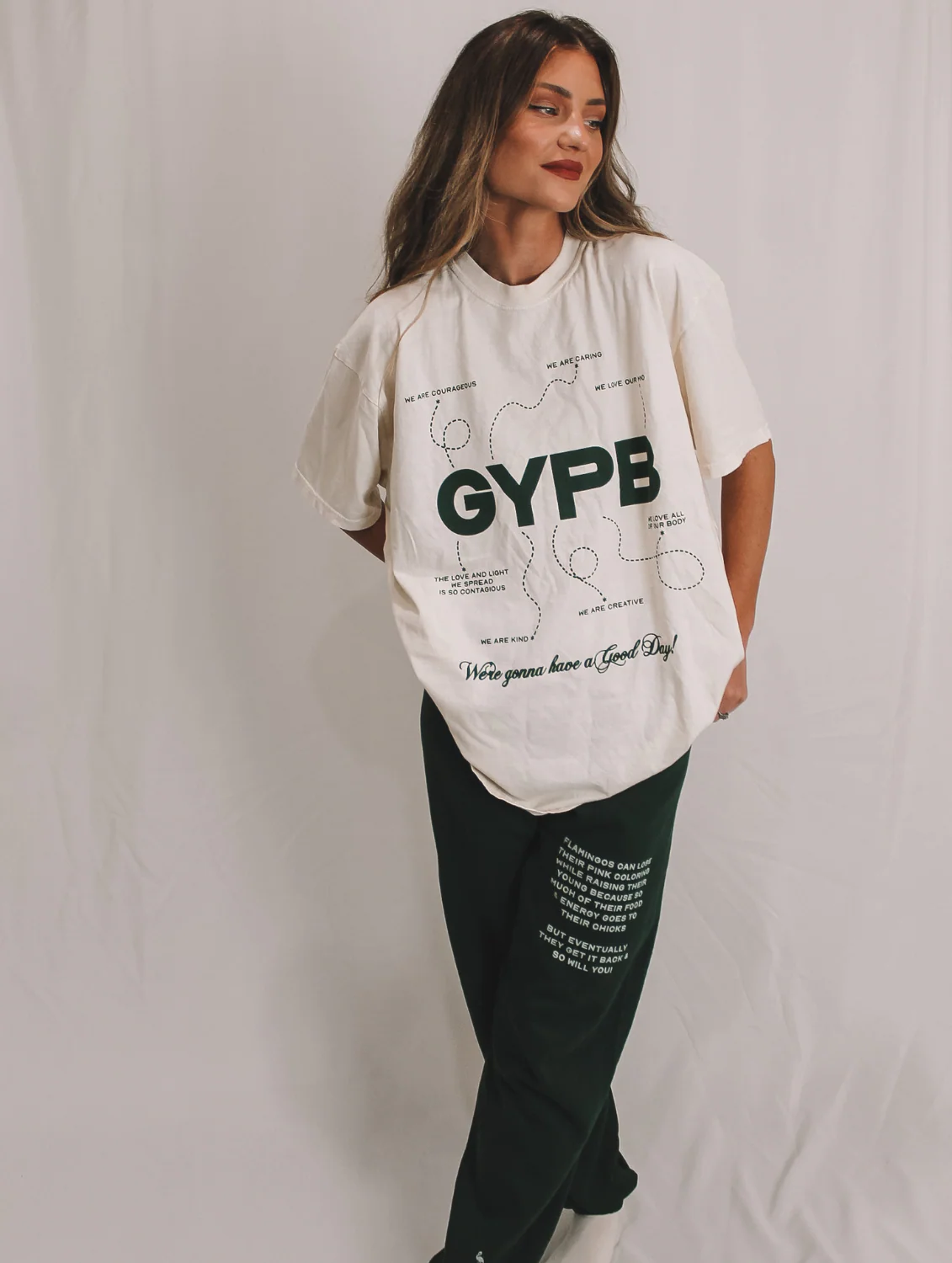 Inspired by "The Cheer" Lindsey made up for her children, this tee includes all the daily affirmations the Gurk family says each morning. This cheer was originally something Lindsey made up to help get her kids excited for the day, but has turned into something that's also helped Lindsey as well as many others (thanks to her online friends sharing the cheer in their own homes and classrooms). The hope is that you'll wear this piece be reminded of all the good you have to offer the world, because the world needs more good people like you ;)