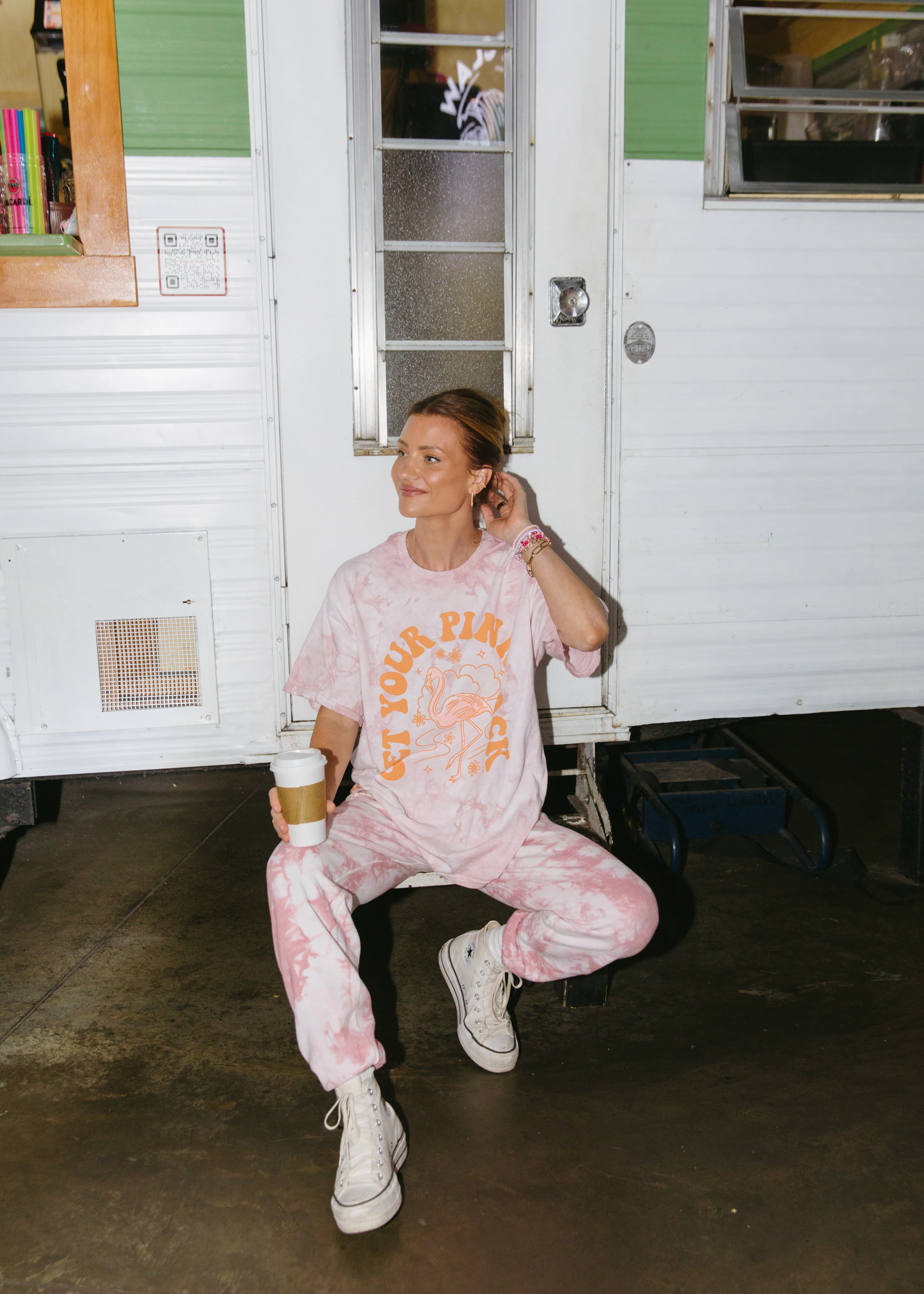 This tee is inspired by nature's rose quartz, which is known as a healing crystal and the stone of unconditional love. It's believed to support emotional and relationship healing, inspire compassion and boost feelings of peace and calm. Naturally, this design is a perfect fit for the Get Your Pink Back line! Wear this super soft, 100% cotton tee alone, or with our rose quartz crystal joggers to make it a set!