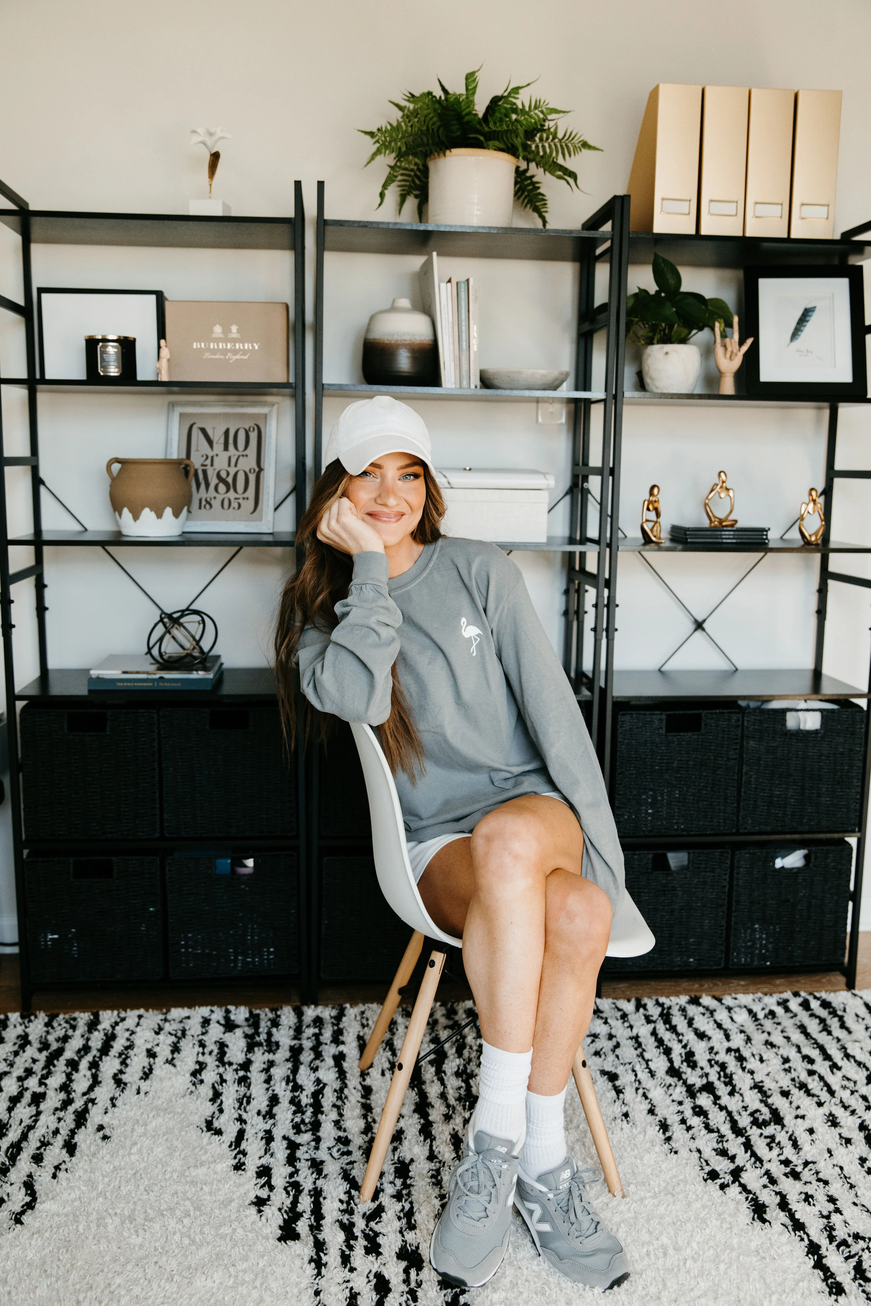 Lindsey is wearing a size Large. This long sleeve tee runs fairly true to size.